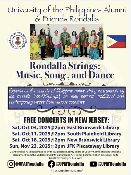 In 2007, the UP Alumni and Friends Rondalla presentied a series of concerts made possible in part by funds from the New Jersey State Council on the Arts/Department of State, a Partner Agency of the National Endowment of the Arts and through a grant provided by the Middlesex County Cultural and Heritage Commission/Board of Chosen Freeholders.